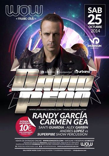 Y por último, pero no menos interesante, podrás irte de fiesta por tan solo 10 euros y podrás disfrutar de David Penn, Randy Garcia o Carmen Gea en la sala Wow de Granada. También actuarán djs residentes del club.