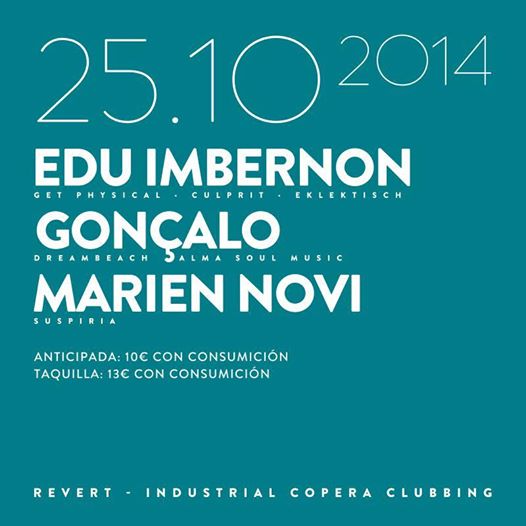 El primero de ellos tendrá lugar en la sala Revert Industrial Copera y ofrece una gran noche con Edu Imbernon, Gonçalo Miranda y Marien Novi por tan solo 10 euros (13 en taquilla)