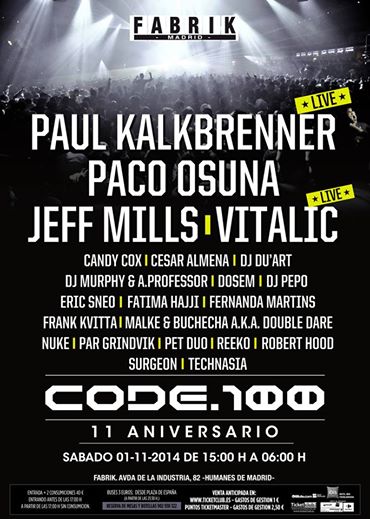 Y para esta noche, te dejamos algunos interesantes eventos, entre los que destaca el CODE 100 en discoteca Fabrik, con los mejores djs nacinoales e internacionales del panorama undergound. Si tienes alguna duda, déjanos un comentario y contacta a través de la cuenta de twitter @DjSatreuh