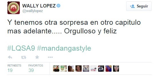 Sin duda alguna, el Mandanga Style se ha convertido en »la canción del invierno» para muchos y nosotros nos hemos preguntado sobre el productor original del tema. Como muchos ya conocen, el prestigioso dj y productor español Wally López fue el encargado de elaborar el tema para la serie. Como podemos observar a continuación, hace unos meses publicó un tweet en el que decía haber colaborado con LQSA, e incluso durante la emisión del capítulo, Wally publicó varios tweets haciendo referencia al Mandanga Style: