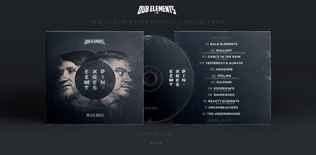 Los mejores artistas dubstep/drum and bass de España Dub Elements (y no lo son solo porque lo diga Vicious) estrenan su segundo álbum del que ya nos hablaron en la entrevista que les llevamos a cabo hace tan solo unos meses (https://houseandujar.wordpress.com/2014/10/16/entrevista-dub-elements/ ). Experiments, que será lanzado oficialmente el 18 de febrero, contiene 12 increíbles canciones muy variadas que nos llevan desde el drums and bass más oscuro hasta el trap más loco junto a Beauty Brain, pasando por el dubstep y el electro. Podemos destacar las colaboraciones con artistas como Dj Nano, Gomad & Monster, Beauty Brain o Acid.