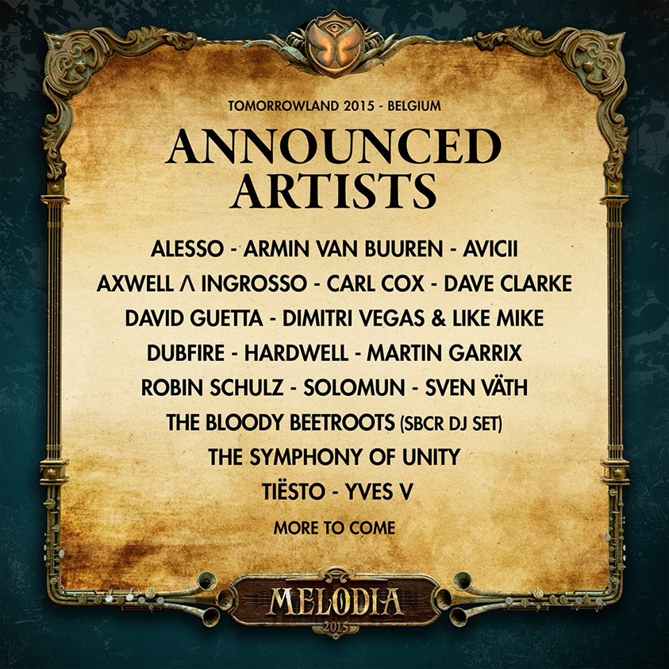 Si ayer os traiamos las primeras confirmaciones del festival Tomorrowland Brasil, hoy toca hacer repaso a las primeras confirmaciones de la edición originaria, es decir en Boom. Tomorrowland tendrá lugar los días 24, 25 y 16 de Julio en su localización de costumbre y a dia de hoy conocemos ya 18 nombres que estarán presentes. Sin duda son grandísimos nombres que representan diferentes estilos y entre los que resañamos ‘The Symphony Of Unity’.