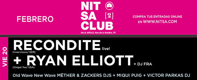 RECONDITE live! + RYAN ELLIOT + Dj Fra + Mëhter + Zackers Djs + Miqui Puig + Victor Parkas Dj