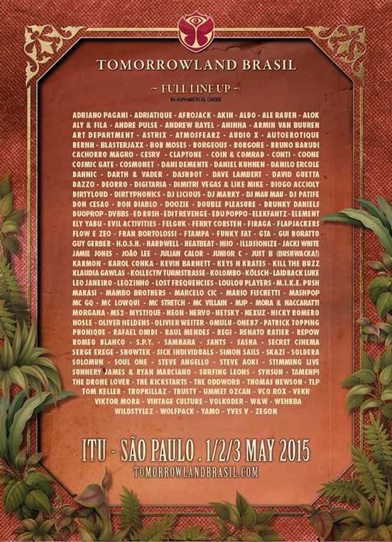 Tras unas últimas semanas llenas de noticias sobre la que será la primera edición de Tomorrowland Brasil, este fin de semana hemos podido conocer el que ya es el cartel al completo del evento que se realizará en tierras brasileñas el primer fin de semana de Mayo.