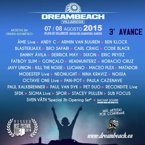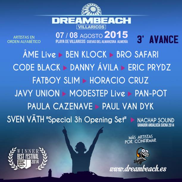 Este tercer avance venía cargado de 14 nuevos nombres, 10 de ellos internacionales entre los que se encuentran los citados anteriormente. Sin embargo, encontramos también algunos nombres que han sorprendido a más de uno: ERIC PRYDZ y FATBOY SLIM. Dos artistazos difíciles de ver por España y que llegan a Dreambeach para realizar dos actuaciones muy personales y muy interesantes de cara al público. En lo referente al techno podemos destacar a los 4 artistazos que vendrán desde Alemania, para muchos el mejor país de este género. ÂME en formato live, BEN KLOCK y PAN-POT se encuentran entre ellos, pero quizás destaque más la leyenda SVEN VATH que será el encargado de abrir el festival ofreciendo un set de 3 horas.
