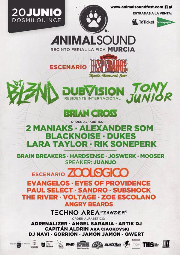 Con artistas como DubVision, Dj Bl3nd, Tony Junior, Brian Cross, Alexander Som o Eyes Of Providence, este festival murciano promete superar su primera edición del pasado año. La apuesta por los mejores artistas nacionales como The River, 2Maniaks, Zoe Escolano, Sandro, Dukes, Evangelos, Gomad & Monster entre otros, más los citados anteriormente, ha sido sin duda una apuesta ganadora. También hay que destacar que este año el evento contará con tres escenarios, incorporando un electo de artistas techno a uno de ellos. No hay la menor duda de que Animal Sound será ese gran festival que abra la temporada festivalera veraniega.