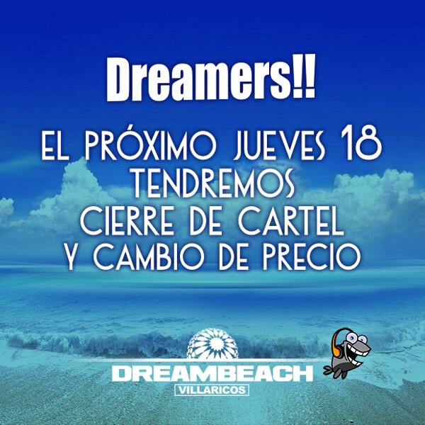 El mejor festival de España cerrará el cartel de su tercera edición el próximo jueves. Sin duda hay ganas de conocer quienes se sumarán al cartel de la increíble edición de 2015 y la expectación, ganas y esperanza en un bombazo final son muy elevadas. De momento ya conocemos que se sumarán artistas como UNER, MENDO, FER BR, VIRGIL ENZIGERT o ERBERT. Aquí estaremos para contaros el cierre de cartel definitivo de Dreambeach Villaricos 2015.