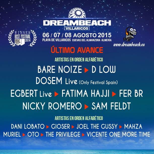 El festival almeriense Dreambeach, ha anunciado hoy una nueva tanda de djs confirmados, que será de hecho la última para la edición de 2015. En ella hemos podido ver variedad, calidad, cantidad y como no, alguna que otra grata sorpresa que ha sorprendido a la vez que alegrado a más de uno: