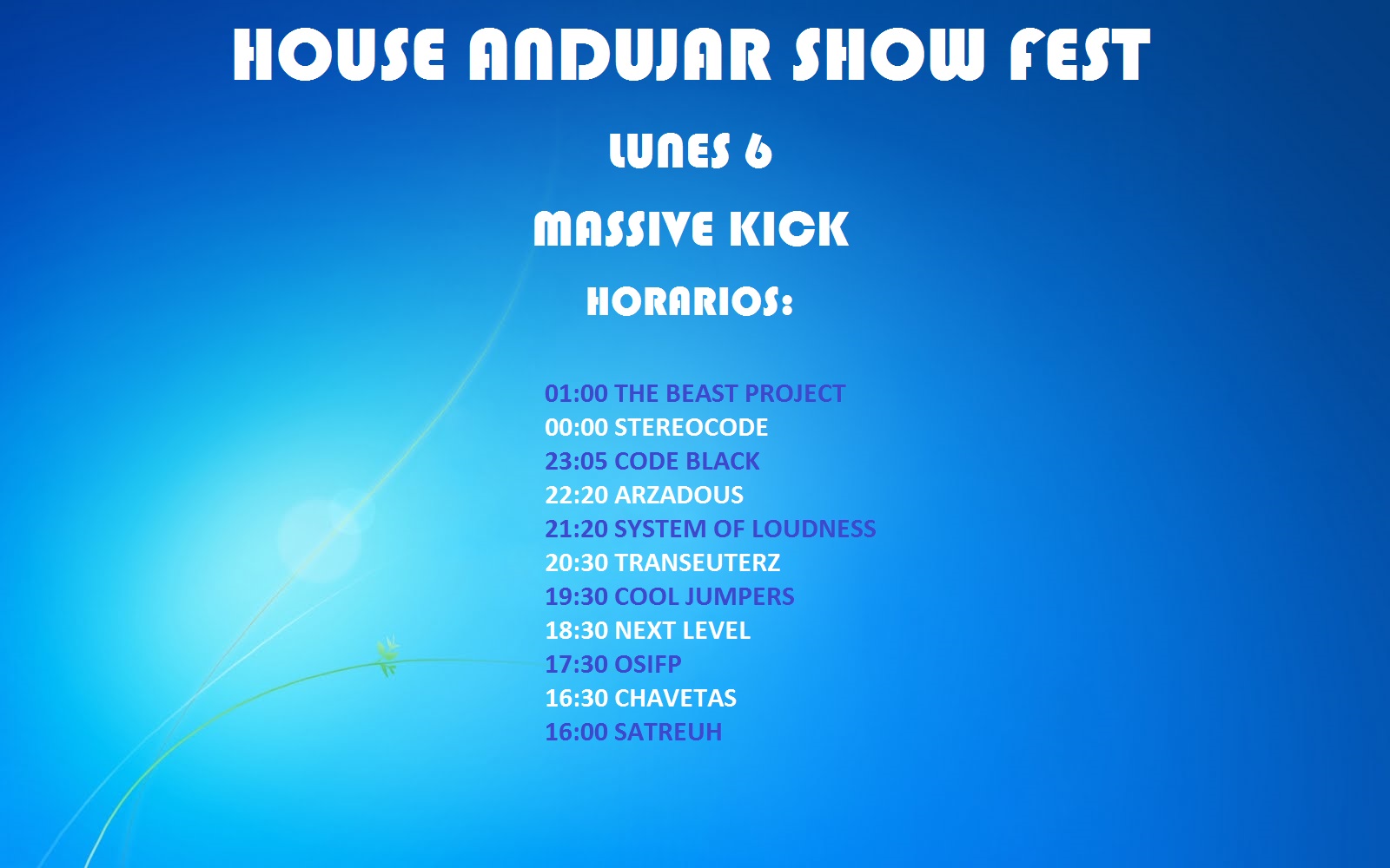 Ya sabéis que debido a la gran cantidad de sesiones que vamos a emitir, lo más seguro es que necesitemos más de una cuenta en mixify para realizar el festival, y para facilitar las cosas y evitar de antemano cualquier tipo de problemas en la emisión, cada set será emitido en una sala de mixify distinta, por lo que habrá que cambiarse después de cada set. Pedimos disculpas por las pequeñas molestias que esto pueda originar, pero es la única forma de asegurarnos que no habrá fallos con la retransmisión. Sin embargo, seguir la retransmisión completa del festival será muy sencillo, ya que en el chat de la sala de cada sesión, pondremos el enlace directo a la siguiente, por lo que solo tienes que acceder al enlace 😉 De todas formas os hemos dejado arriba TODOS los enlaces de #MassiveKick para que no te pierdas a ninguno de tus djs favoritos, aunque nuestro consejo es ir viéndolos a todos para disfrutar de pleno de nuestro festival online!! Mixify dispone de un chat en cada sala como podríais ver en estos días, por lo que podréis ir comentando qué os parecen las sesiones, al igual que podéis ir puntuando la sesión cada tiempo determinado, presionando el botón ‘HYPE’ que aparece en la parte superior. Al final del festival diremos las sesiones con más hypes y con más seguimiento. Podréis registraros fácilmente y gratuitamente en la plataforma. Síguenos en twitter para estar al tanto de todo y comentar con nosotros las sesiones a través de los hagstags #HouseAndujarShowFest #MassiveKick #HASF 😛 @HouseAndujar