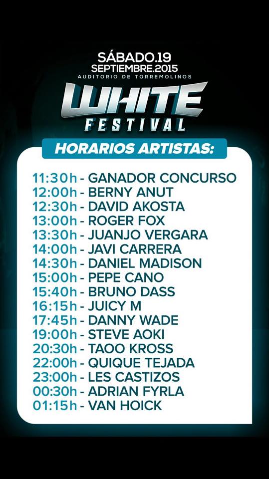 En España tendrá lugar un importante festival encabezado por el norteamericano Steve Aoki. El Auditorio de la localidad malagueña de Torremolinos será el recinto que acoja este interesante festival que proporcionará una gran forma de cerrar el verano. En él también estarán presentes djs de gran altura como Juicy M, Les Castizos, Danny Wade, Juanjo Vergara, Taao Kroos o Quique Tejada. Todavía estás a tiempo de asistir a este gran evento. Vístite de blanco y mañana podrás disfrutar de WHITE FESTIVAL
