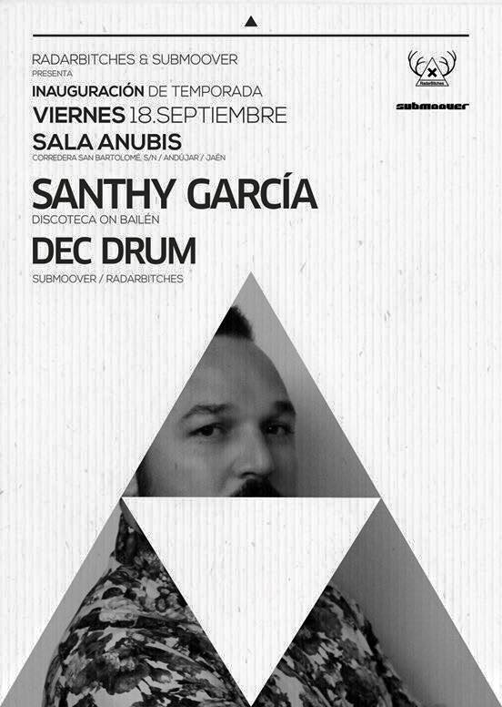 Y para nuestros seguidores y vecinos más cercanos y de la provincia de Jaén, hoy tendrá lugar el opening de temporada en una de las salas que apuesta por la música electrónica en nuestra localidad. Sala Anubis habré us puertas para una nueva temporada y lo hará de manos de Dec Drum y un invitado muy especial: Santhy Garcia (Residente Discoteca On Bialén) a quién entrevistamos hace unos meses. https://houseandujar.wordpress.com/2015/04/19/entrevista-santhy-garcia/