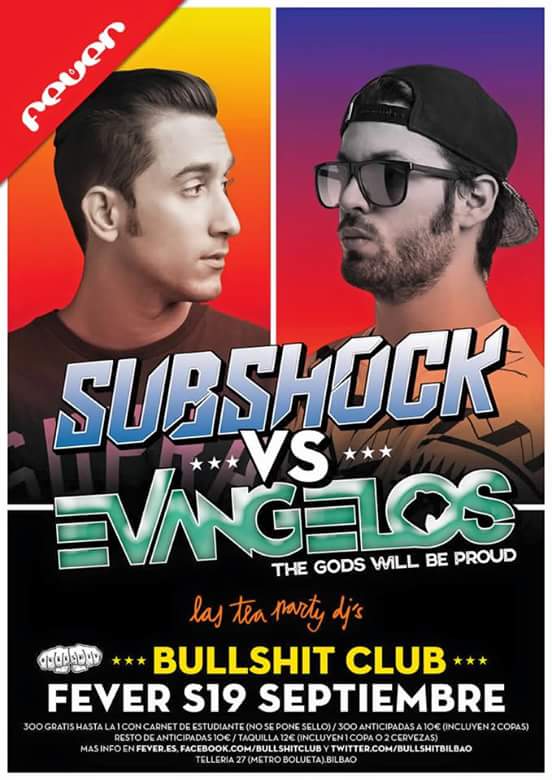 En Bilbao tendrá lugar la actuación de dos de la promesas de la música electrónica nacional. Subhsocks, quién ya cuente en su historial con el apoyo de grandes djs como el mismísimo Hardwell, en back to back junto a Evangelos, que ha recibido el apoyo de grandes djs por su reciente trabajo ‘Dope Haus’ junto a Sandro (Laidback Luke, Showtek, David Guetta, Sick Individuals, DOD..), llegan a Bullshit Club para poner patas arriba Bilbao, junto a Las Tea Party Djs.