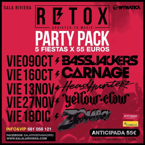 La sala Riviera de Madrid, presentó hace unos días una nueva forma de fiesta llamada RETOX. Retox consiste en una serie de eventos a lo largo de los próximos meses, en los que algunos de los djs más importantes del mundo visitarán la capital española.