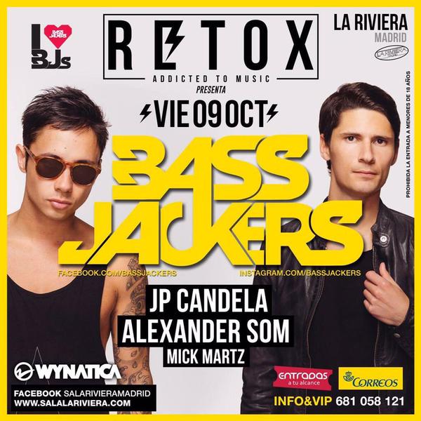 La primera de las 5 grandes fiestas de RETOX en la Sala Riviera Madrid, tendrá lugar hoy con dos grandes artistas mainstream como son Bassjackers. Para más información consulta nuestra siguiente entrada: