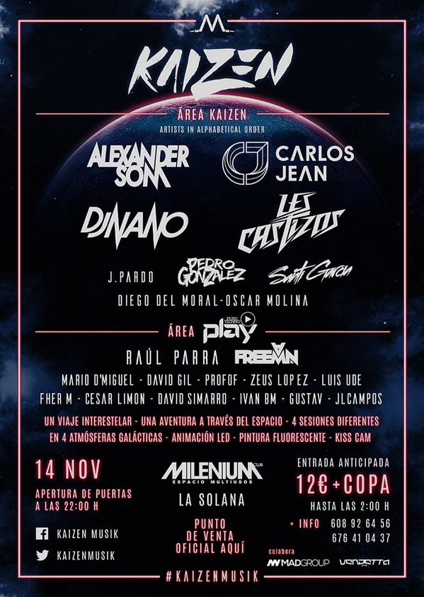 Área Kaizen: Alexander Som + Carlos Jean + Dj Nano Les Castizos + J Pardo + Pedro González + Santi Garcia + Diego del Moral + Oscar Molina