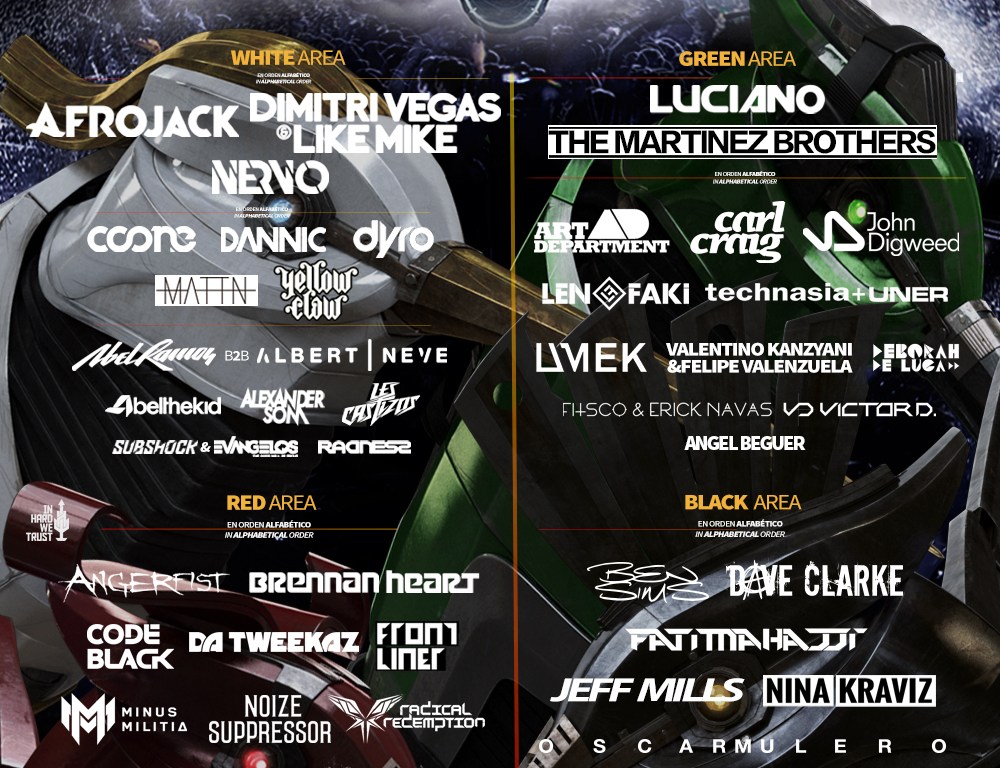 Lineup completo de #RedArea: Brennan Heart + Zatox + Frontliner + Angerfist + Da Tweekaz + Minus Militia + Code Black + Radical Redemption + Warface + Noize Suppressor + Vicente OMT + La Triada + Dj Game + Rubenkore + J Stylerz + Pinelo