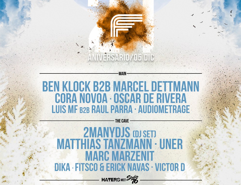 Lineup completo: Ben Klock & Marcel Dettmann (4 hours set) + 2manydjs + Matthias Tanzmann + Uner + Marc Marzenit + Cora Novoa + Oscar de Rivera + Luis MF + Raul Parra + Raúl Pacheco + Victor D + Fitsco & Erick Navas + DIKA + M.I.T.A. + Vico Deep + Audimetrage