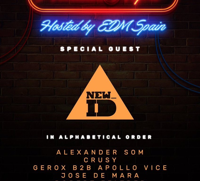 El gran protagonista de la noche junto a José de Mara será NEW_ID, uno de los productores más importantes del sello Axtone, liderado por Axwell. Con temas como Aerogames o su reciente Aftermath el público podrá disfrutar de uno de los productores europeos de mayor calidad. En esta especial noche NEW_ID liderará una programación bastante destacable, donde se podrá disfrutar también de las actuaciones de CRUSY, ALEXANDER SOM, ROBERT FELTRER y el back to back entre GEROX y APOLLO VICE.