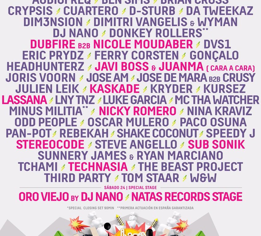 En el plano nacional encontramos al dúo de moda: ABEL RAMOS & ALBERT NEVE. Tras arrasar por media España y por medio mundo gracias a temas como Party o Let The Bass Be Louder, y actuaciones como la de Ultra Miami, Abel y Albert tendrán la misión de liderar a los artistas españoles junto a otro gran número de djs nacionales de primer nivel. Por último y no menos importante tenemos a LASSANA. Siendo uno de los más queridos por el público, Lassana repite tras dejar muy buenas sensaciones en su actuación de 2016, donde tropical house y deep fueron protagonistas.