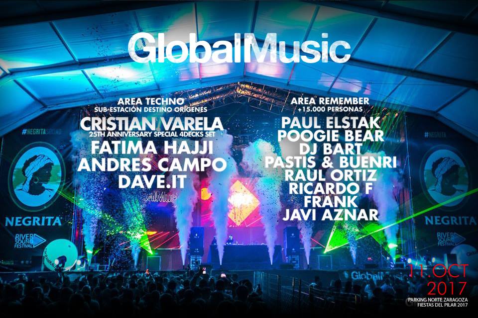 Llega el turno para hablar de otro de los grandes eventos de los Pilares 2017. Global Music es sin duda uno de los grandes festivales que se celebran en Zaragoza durante estos días, pasando por él importantes djs del remember y del techno. La cita tendrá lugar el miércoles 11.