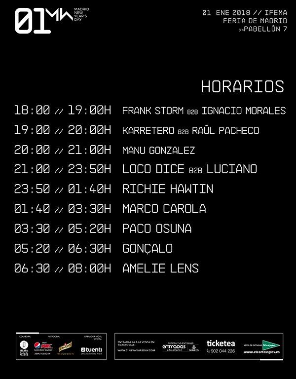 Esperemos que el festival de IFEMA sea todo un éxito y se de la bienvenida al año de la mejor forma posible con Luciano, Loco Dice, Marco Carola, Richie Hawtin, Paco Osuna y compañía: