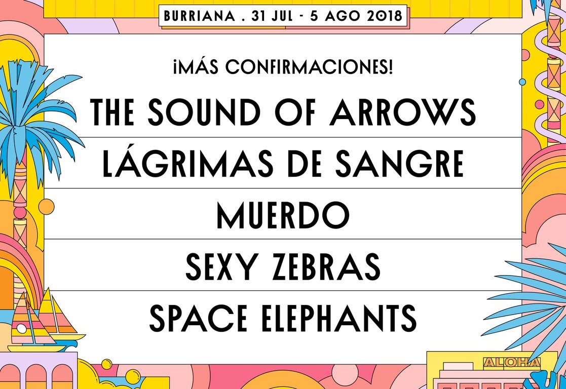 Este nuevo avance sorpresa se ha visto liderado por THE SOUND OF ARROWS. Los suecos ofrecerán su peculiar sonido pop cargado de influencias electrónicas con temas como Magic, aportando así variedad a la programación. Como electrónica pura y dura más cercana a lo que es el EDM encontramos a la formación española SPACE ELEPHANTS, infalibles en Arenal Sound. Junto a ellos han sido anunciados el Hip-Hop, Rock y Reggae de la formación LÁGRIMAS DE SANGRE, el rock de SEXY ZEBRAS y el folk-fusión de MUERDO.