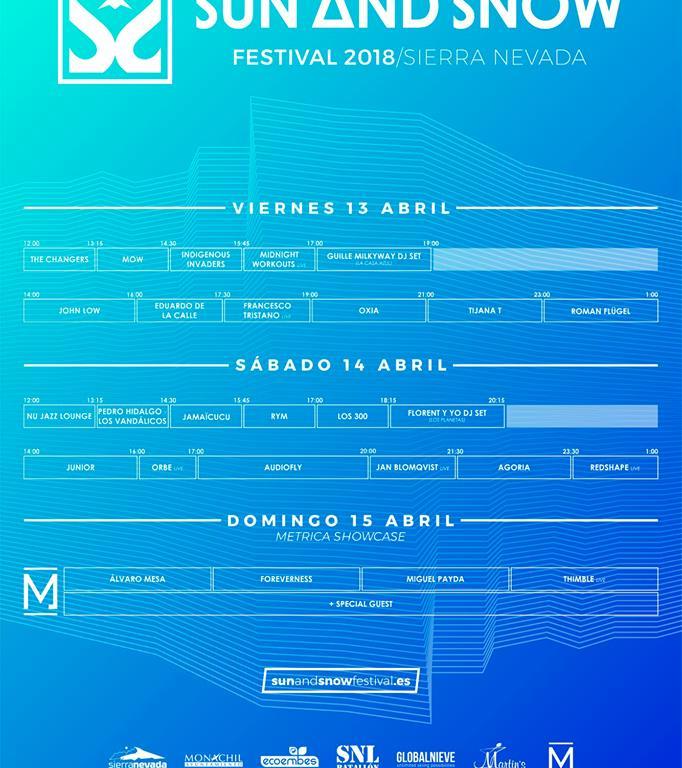El novedoso festival Sun & Snow de Granada ya tiene horarios de actuaciones para la que será su primera edición (viernes 13, sábado 14 y domingo 15 de abril). Con un cartel cargado de interesantes actuaciones musicales (Agoria, Jan Blomqvist, Oxia, RedShape o Eduardo de la Calle entre muchos otros), el festival de Sierra Nevada combinará a la perfección música electrónica con la naturaleza y la nieve.