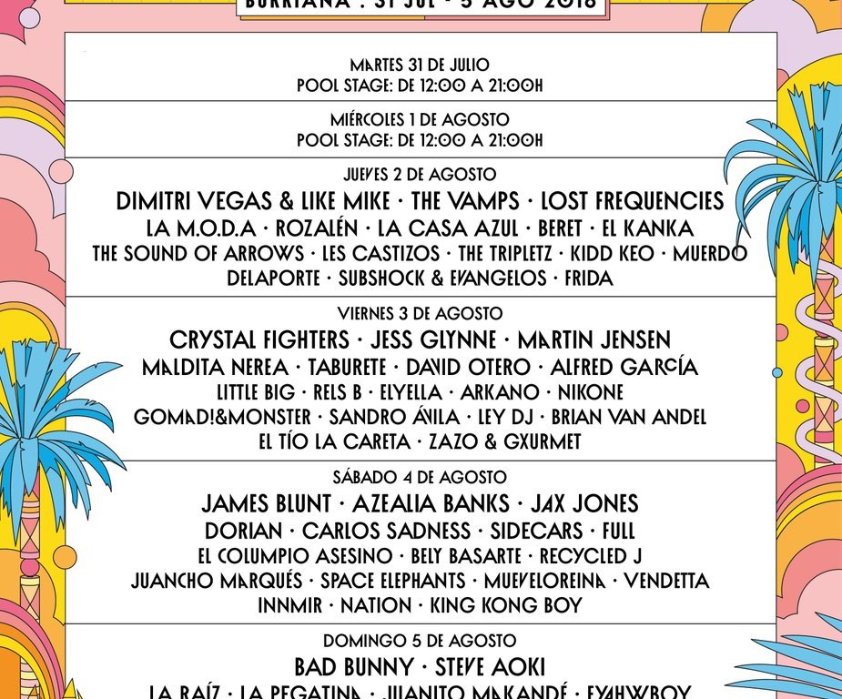 No podemos pasar por alto sin asociar a otros artistas confirmados con la electrónica. Es el caso del cantante inglés JAMES BLUNT, a quien hemos podido ver colaborar recientemente con productores como Robin Schulz o Lost Frequencies; o el de la rapera norteamericana AZEALIA BANKS, quien incorpora un toque electrónico en muchos de sus temas. En este variado avance hemos podido ver otros grandes nombres como The Vamps, Full, Zoé, David Otero, Rels B o Alfred García (representante de España en Eurovisión 2018) entre otros.