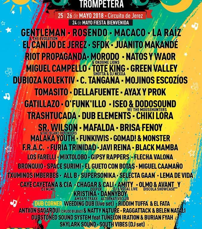 Los días 25 y 26 de mayo el Circuito de Jerez acogerá al final la nueva edición de Primavera Tompetera. El cartel por suerte ha sufrido pocas modificaciones (Carlos Jean, Yung Beef o La Mala Rodriguez entre los más destacados, aunque ha habido nuevas confirmaciones en compensación), por lo que importantes djs nacionales como Gomad! & Monster, Javi Reina, Dub Elements o Black Mamba, múltiples exponentes de Trap y música urbana (C.Tangana, Dellafuente, Brisa Fenoy…) y Hip Hop – Rap (SDFK, Tote King, Natos & Waor, Ayak & Prok…) junto a otros cantantes y bandas muy variados (Macaco*, Gentleman*, Morodo, La Raíz, El Canijo de Jerez, Rosendo...) serán los grandes protagonistas del festival. (* Nuevos confirmados)