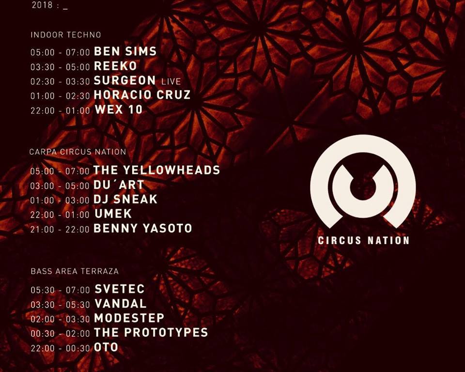Con un cartel variado y muy llamativo, una nueva edición de Circus Nation llega a Granada para reunir a miles de fans de la electrónica durante la jornada de este sábado 6 de octubre. El festival, que contará con artistazos como Umek, The Prototypes, Ben Sims, Modestep, Dj Sneak, Surgeon o Wex 10 entre muchos otros, se postula como un nuevo éxito en la localidad de Granada, la cuál ya está lista para la cita.