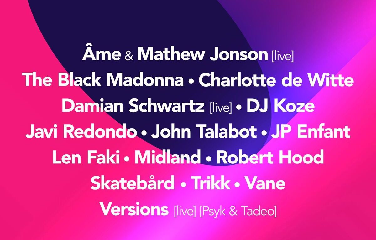En el cartel encontramos los nombres más reconocidos por el público seguido de géneros cercanos al underground. Por encima de los demás destacan figuras como las de LEN FAKI, THE BLACK MADONNA y ROBERT HOOD, 3 artistas con una enorme trayectoria y con estilos muy definidos y reconocidos. No menos interesante será la presencia de la emergente CHARLOTTE DE WITTE, así como el set en conjunto que llevarán a cabo ÂME y MATHEW JONSON, siendo además en formato live.