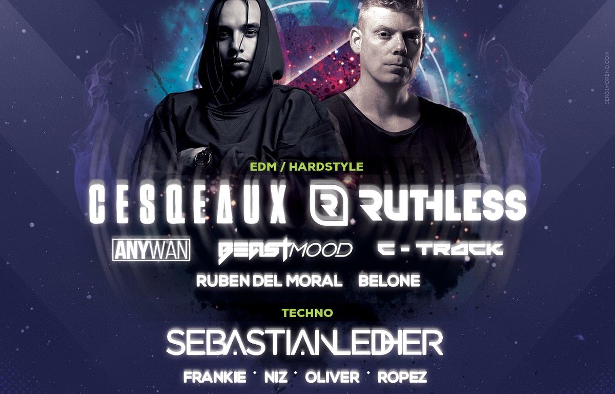 Los holandeses CESQEAUX y RUTHLESS serán los grandes invitados para tal ocasión. El primero de ellos, afamado por sus producciones en Barong Family y colaboraciones con djs como YC, Martin Garrix o Afrojack, expondrá su mezcla de estilos en torno al bass. El segundo, uno de los líderes indiscutibles del género Freestyle, demostrará a los platos el nivel que viene ofreciendo desde hace muchos años. En el techno el headliner será SEBASTIAN LEDHER. El colombiano hará bailar al público con un elegante set.