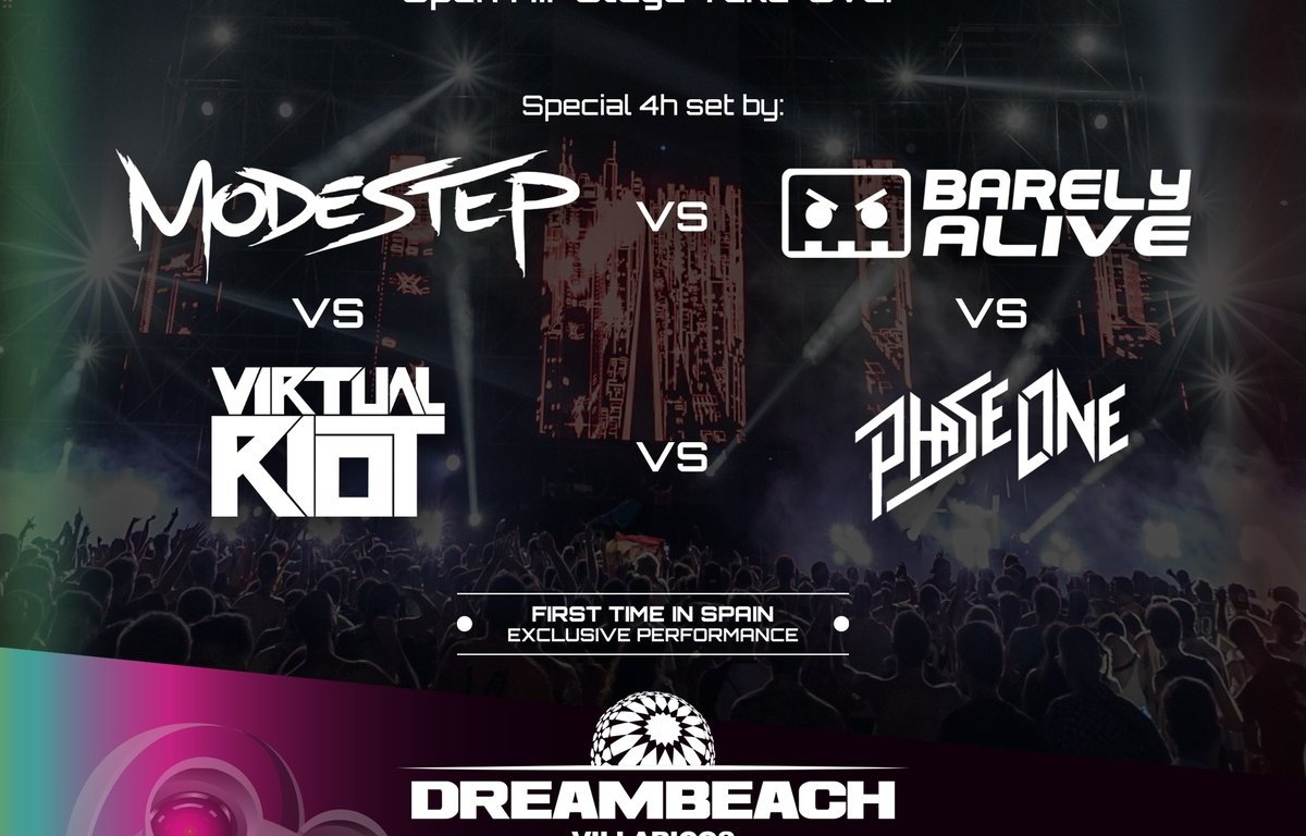 DISCIPLE tomará el control del Open Air Stage para hacer disfrutar a los fans de 4 horas non stop del mejor Dubstep. MODESTEP vs VIRTUAL RIOT vs BARELY ALIVE vs PHASE ONE serán los protagonistas de tal take-over, siendo este anuncio un auténtico bombazo a todos los niveles. Todos estos artistas cuentan con gran reputación y fama a nivel mundial: la posibilidad de tenerlos juntos en el mismo escenario durante 4 horas es simplemente algo bestial. Como era de esperar, esta gran sorpresa de Dreambeach ha sido muy bien acogida por los fans.