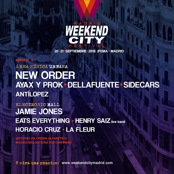 Los días 20 y 21 de septiembre, IFEMA ofrecerá una resistencia al fin de la temporada veraniega estival con un proyecto muy ilusionante. Madrid Weekend City se postula como la última gran cita festivalera del verano en nuestro país, por lo que muchos seguro que ya tienen el ojo echado a lo que será una de las revelaciones de los próximos meses. Por último os dejamos la programación desvelada a día de hoy: