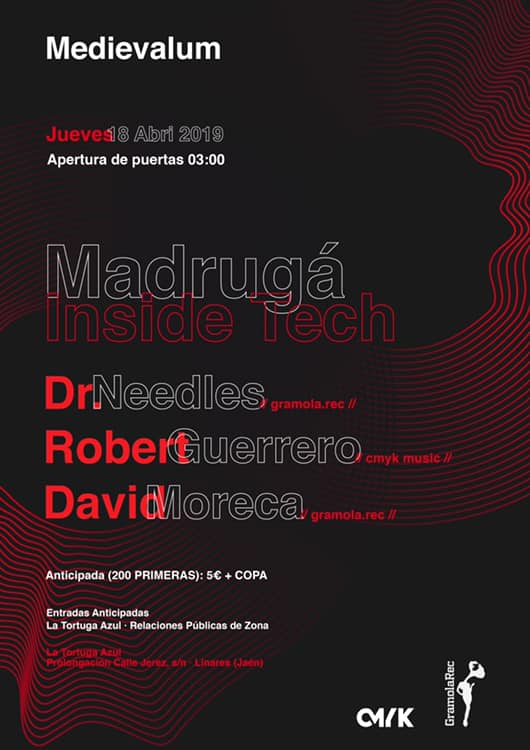 El jiennense DR NEEDLES, el isturgitano ROBERT GUERRERO y el linarense DAVID MORECA serán los djs encargados de hacer que la mejor música suene durante toda la noche. El evento, que tendrá lugar como decimos en Medievalum (Complejo Tortuga Azul), tendrá su apertura de puertas a las 03:00 de la noche, prolongándose la música hasta altas horas de la madrugada, con los primeros rayos de sol apareciendo en el horizonte. El precio de las entradas anticipadas es de 5€ (incluye consumición).