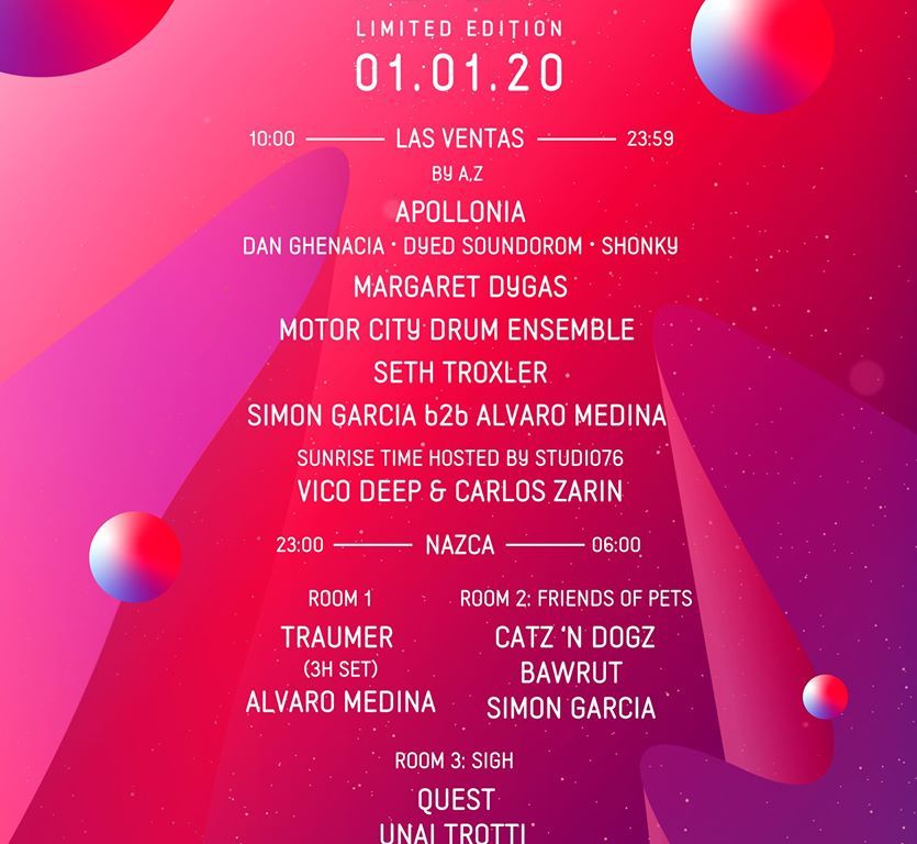 El estadounidense SETH TROXLER, los franceses APOLLONIA, el alemán MOTOR CITY DRUM ENSEMBLE y la polaca MARGARET DYGAS serán los grandes protagonistas en las Ventas, exponiendo el mejor Techno de tintes suaves, con varios subgéneros como el Tech-House o el Deep ganando mucho peso durante la jornada. Junto a ellos estarán también SIMÓN GARCÍA y ÁLVARO MEDINA en una actuación B2B, así como VICO DEEP & CARLOS ZARIN, quienes protagonizarán un especial Sunrise Set by Studio 76.