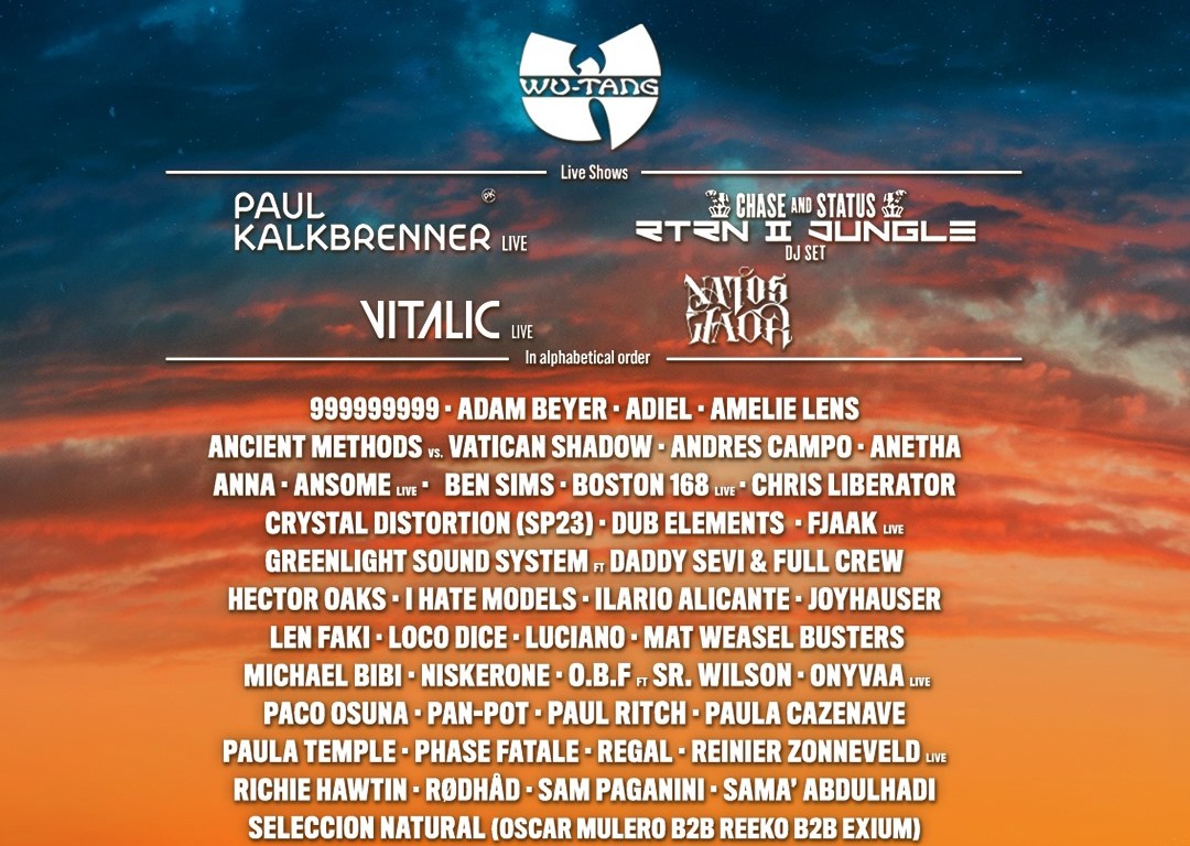 Grandes atractivos del cartel como Vitalic, Richie Hawtin, Paul Kalkbrenner, Tale Of Us, Sub Focus, Luciano, Loco Dice, Chase & Status, Paco Osuna, Wu Tang Clan, Solomun o Adam Beyer se han mantenido en un brutal Line-Up que conserva un total de 42 actuaciones de las 51 que habían sido anunciadas con anterioridad. A ellos se han sumado un total de 11 nuevas actuaciones que refuerzan un elenco sublime y variado, de las cuáles 3 ya conocimos cuando se anunció su presencia para el mencionado streaming: la brasileña ANNA, la palestina SAMA’ ABDULHADI y el español REGAL.