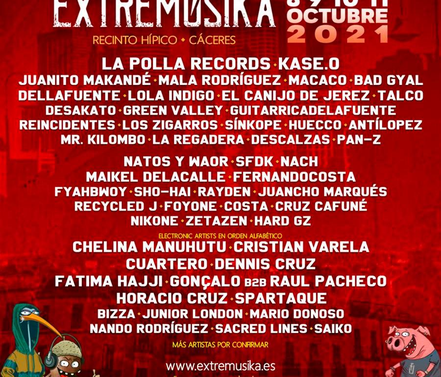 Extremúsika regresará del 8 al 11 de octubre de 2021 para celebrar a lo grande una edición cargada de la mejor música en vivo donde diferentes artistas de lo mejor del Rock, música urbana, Pop, Hip-Hop y por supuesto, electrónica, harán las delicias de un público con ganas de fiesta. En el Line-Up de electrónica encontramos nombres de relumbrón de la escena Underground como Chelina Manuhutu, Cristian Varela, Spartaque, Raúl Pacheco b2b Gonçalo o Dennis Cruz entre otros, quienes habían sido confirmados para 2020 (a excepción de la primera, que ha sido anunciada recientemente) y que por supuesto estarán en 2021.