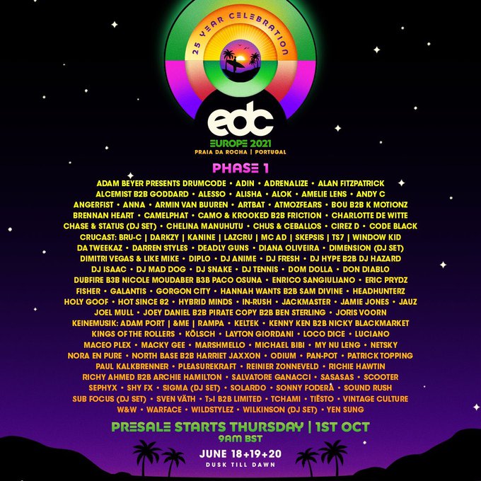 Fantásticas noticias han llegado a la Península Ibérica en las últimas semanas. La afamada marca de festivales EDC anunciaba que en 2021 regresará a Europa para llevar a cabo una de sus mágicas y asombrosas ediciones en suelo portugués. La cita, que tendrá lugar del 18 al 20 de Junio en la sureña ciudad de Portimão (a poco más de 100km de la frontera entre España-Portugal), congregará a un espectacular elenco de artistas del que ya se conoce la Phase 1 del LineUp.