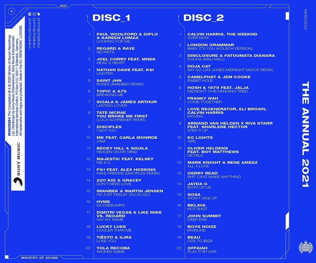 El afamado club británico MINISTRY OF SOUND anunciaba en los últimos días el lanzamiento de su nuevo recopilatorio anual con lo mejor de la música electrónica. Siendo ya un clásico de cada temporada, THE ANNUAL 2021 ofrece una exquisita selección musical compuesta por 40 temas repartidos equitativamente en 2 discos.