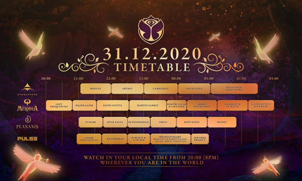 En las últimas horas hemos podido conocer los horarios completos previstos en tal fantástica programación. Referentes variados como David Guetta, Maceo Plex, Diplo, Martin Garrix, Brennan Heart, DV&LM, Camelphat o Netsky lideran una lista de más de 20 actuaciones que estarán distribuidas en 4 escenarios virtuales.