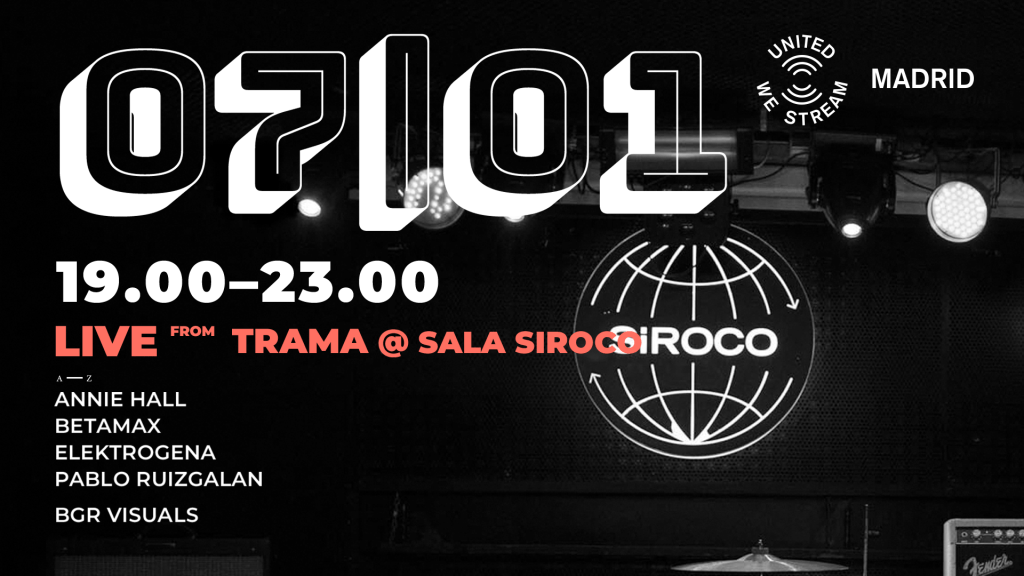 La marca UNITED WE STREAM MADRID ha querido recibir al 2021 y a los Reyes Magos con la mejor música electrónica sonando con protagonismo. Por ello, han unido fuerzas con Trama Club para llevar a cabo este jueves 7 de enero una retransmisión desde Sala Siroco que desde las 19:00 de la tarde hasta las 23:00 de la noche nos hará disfrutar desde casa de la mejor manera posible.