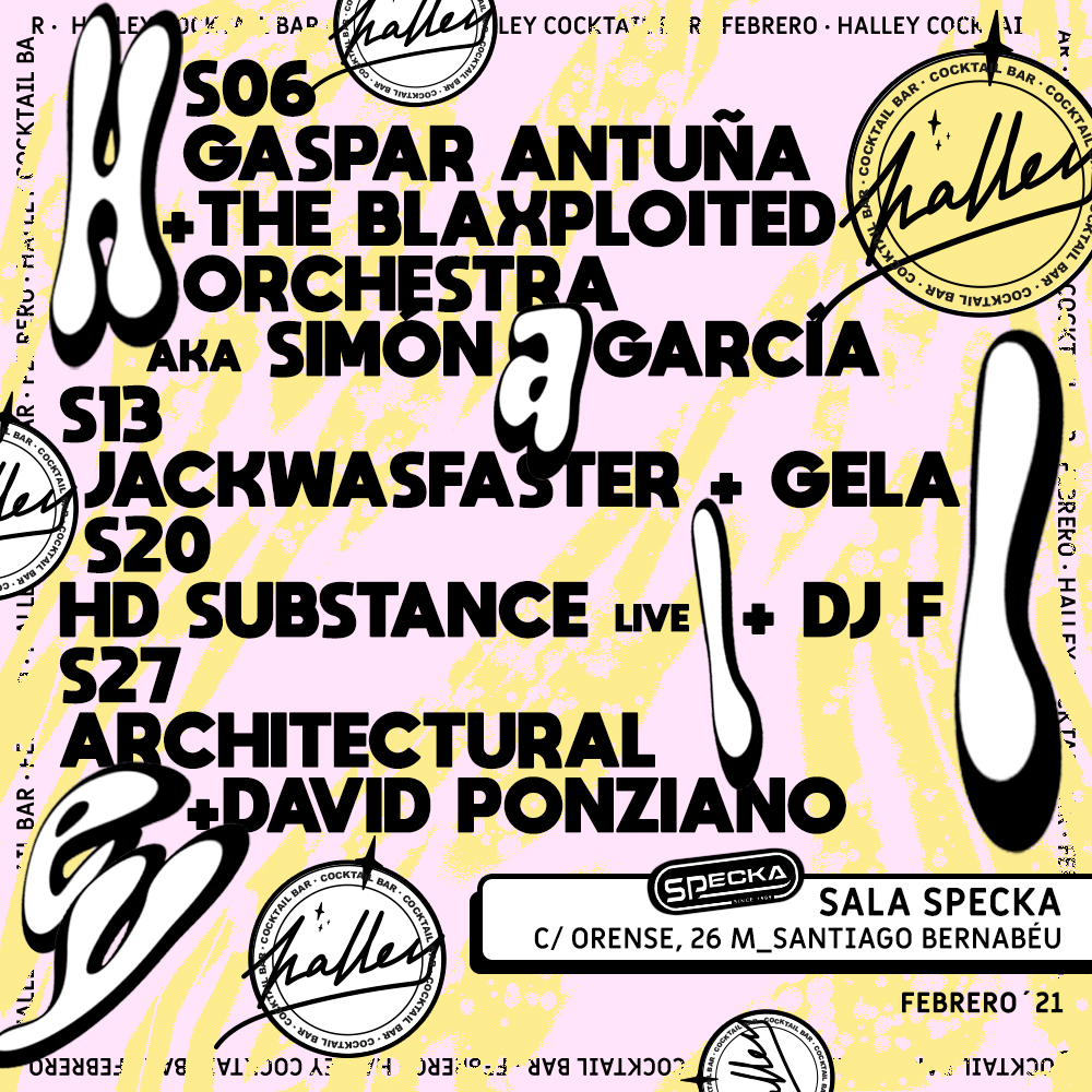 Pero hasta la llegada de Architectural, Halley ha preparado tres citas con la flor y nata de la electrónica madrileña. Así, el sábado 6 de febrero recibirá la visita de Gaspar Antuña y de The Blaxploited Orchestra. El primero es dueño de uno de los espectros musicales más amplios de la capital, eso sí, con el groove siempre como norte. El segundo, también conocido como Simón García, ha creado uno de los estilos más hipnóticos, personales y atemporales que se pueden encontrar en la ciudad.