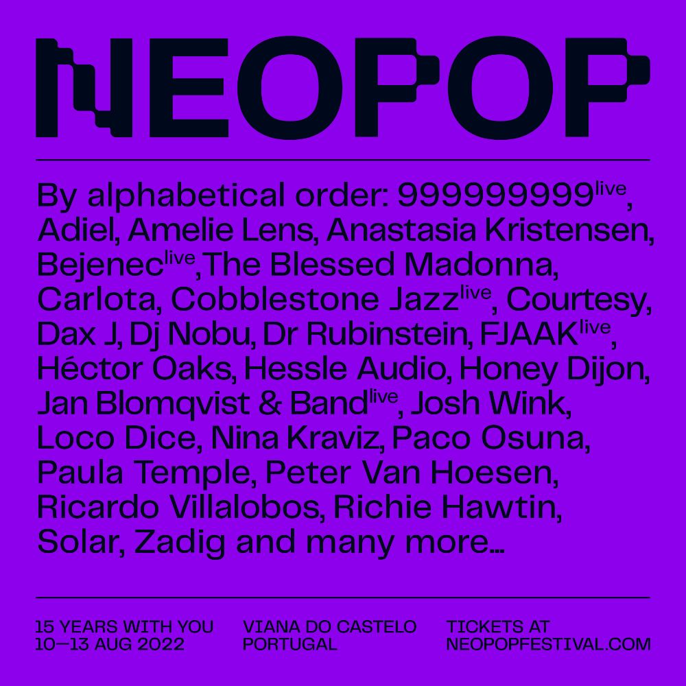 NEOPOP tiene muchas ganas de regresar y los fans tienen muchas ganas de que NEOPOP regrese. En vistas a un verano de 2022 muy ilusionante, el macroevento de Portugal comienza a perfilar una edición especial por el mágico número de celebración, así como por las ganas y el hype tras muchos meses de parón a causa de la pandemia. ¡Seguiremos atentos a noticias del festival de nuestro país vecino!