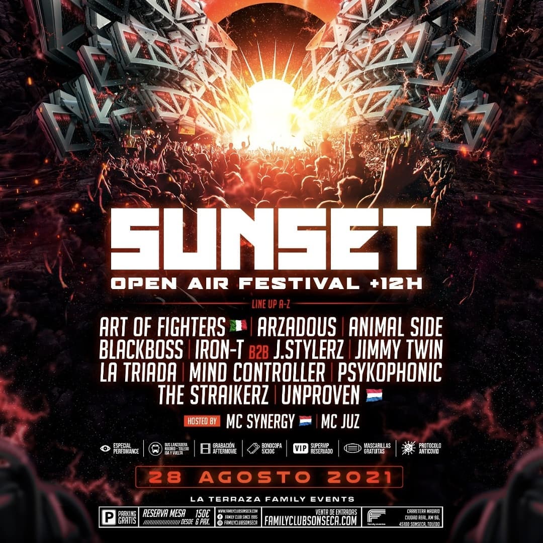 La música electrónica comienza a volver progresivamente en España y el Hard contará con protagonismo propio en una cita muy especial. El sábado 28 de Agosto SUNSET Open Air Festival llevará a Family Club 1995 de Sonseca (Toledo) un auténtico eventazo donde el Hard más rudo y potente hará que los cimientos se muevan con artistas de primer nivel.