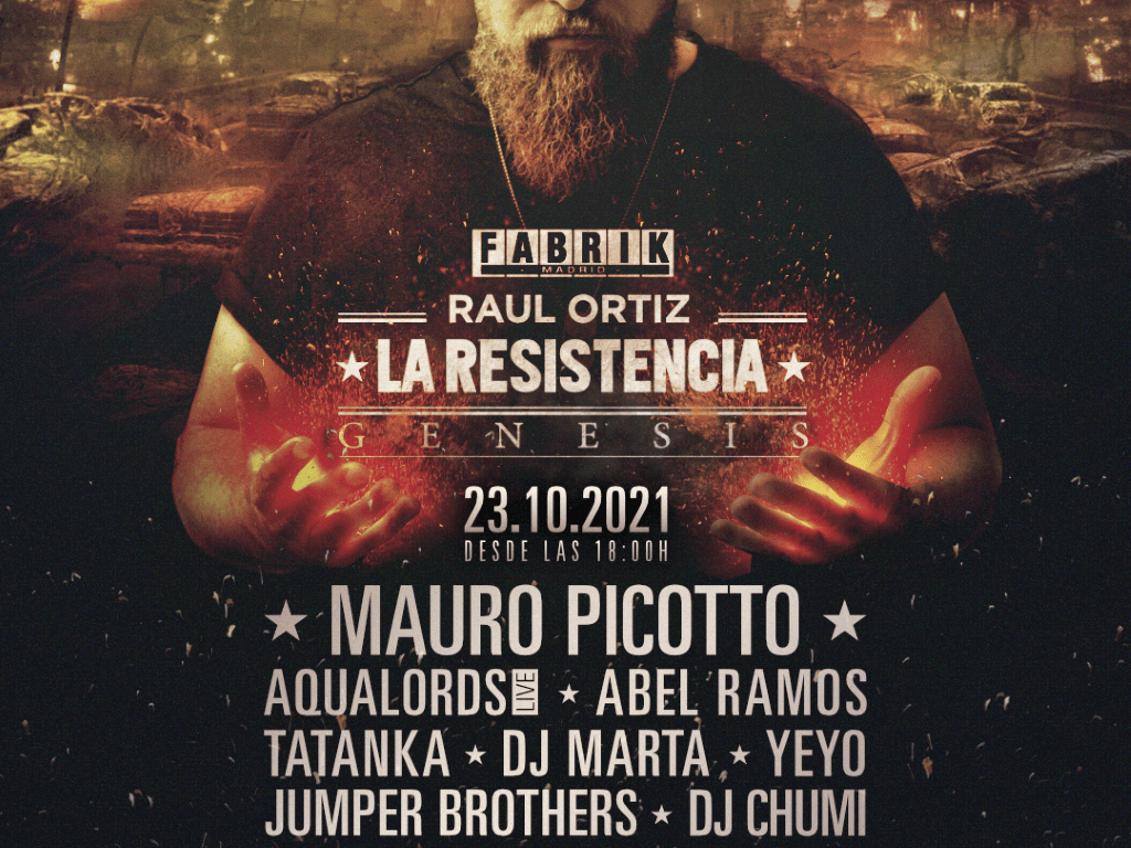 LA RESISTENCIA del dj RAÚL ORTIZ será el primer gran evento bajo el techo de FABRIK. La cita, que tendrá lugar el sábado 23 de octubre a partir de las 18:00 de la tarde, reunirá a los platos a grandes referentes del remember y del Hard. Liderados por Raúl Ortiz, invitados especiales como los italianos TATANKA y MAURO PICOTTO o los neerlandeses DEEPACK, así como referentes nacionales de la talla de JUMPER BROTHERS, ABEL RAMOS, DJ MARTA o VICENTE OMT etc., harán las delicias del público en esta fecha tan señalada.