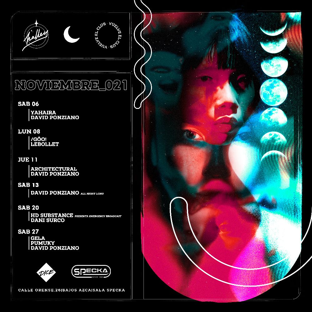 Halley ya tiene entre manos la programación de noviembre. Un cautivador muestrario con el que la sesión, convertida en referente del Underground madrileño, afronta el último tramo del año. Yahaira será la encargada de estrenar el mes el sábado día 6. Sus sets se caracterizan por crear atmósferas únicas dominadas por su particular sonido que aúna disco, house, ritmos chamánicos e influencias indies con algo de los ’80. Una diversidad y adaptabilidad que le permiten conquistar a todo tipo de oídos. Le acompañará en la cabina David Ponziano, creador de la sesión.
