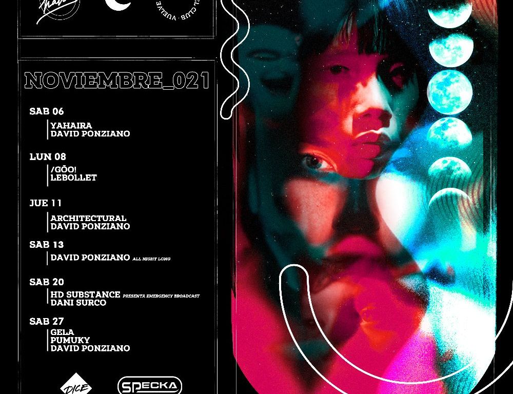 Una semana más tarde, el sábado 20 de noviembre, será el turno de HD Substance y Dani Surco. El primero es uno de los máximos referentes de la escena techno española que ha conseguido hacer del eclecticismo su seña de identidad. Mientras que el segundo es una mente incansable y auténtico clubber. Un buscador meticuloso de joyas electrónicas con las que crea viajes musicales que tienen identidad propia.