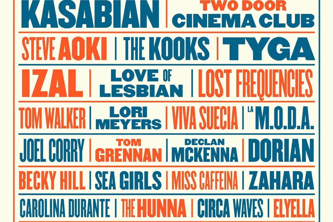 Fuera del terreno electrónico, el cartel brilla con nombres internacionales del calibre de TYGA, KASABIAN, TWO DOOR CINEMA CLUB o THE KOOKS, así como bandas nacionales del nivel de IZAL, LOVE OF LESBIAN, LORI MEYER o LA M.O.D.A. entre otros. Rock, Indie, estilos Urbanos y Pop no faltarán a una cita memorable con la música en vivo.