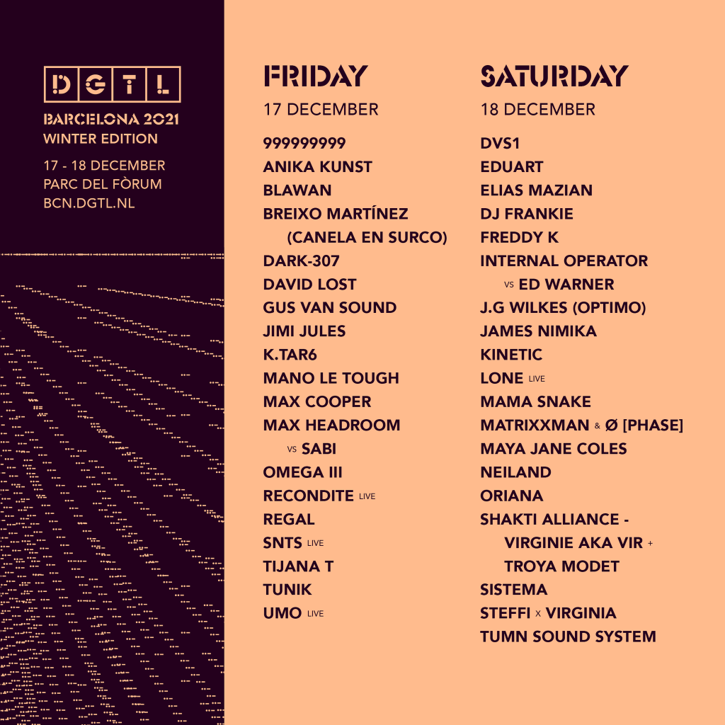 ¡DGTL BARCELONA vuelve a la acción! La edición catalana del festival de origen neerlandés va a celebrar en el mes de diciembre una cita especial invernal. Con el fin de cortar de una vez la racha de parón sin este festival (a causa de la pandemia), DGTL tomará el control del Parc del Fórum los días 17 y 18 de diciembre.